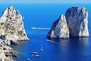 Take the ferry to Isle of Capri and discover the island's stunning rocky coastline, the famous Arco Naturale and Faraglioni (stacks) landforms. You will also tour the historic towns of Capri and Anacapri!