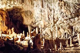 Guided Tour of Postojna Cave. Cross the border into Slovenia for a tour of the largest example of Karst topography in Europe! This unforgettable tour begins with a ride on an underground train past fantastic limestone sculptures, followed by a walking tour deep inside the mountain.